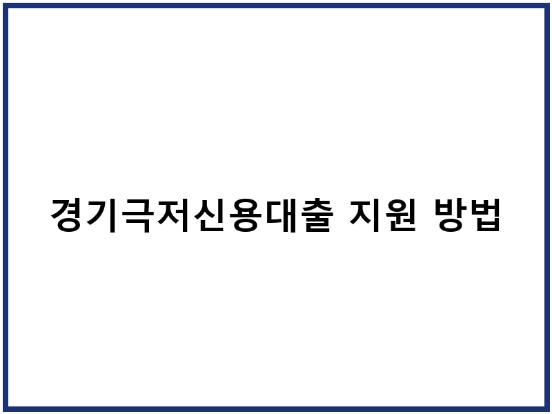 경기극저신용대출 지원 방법