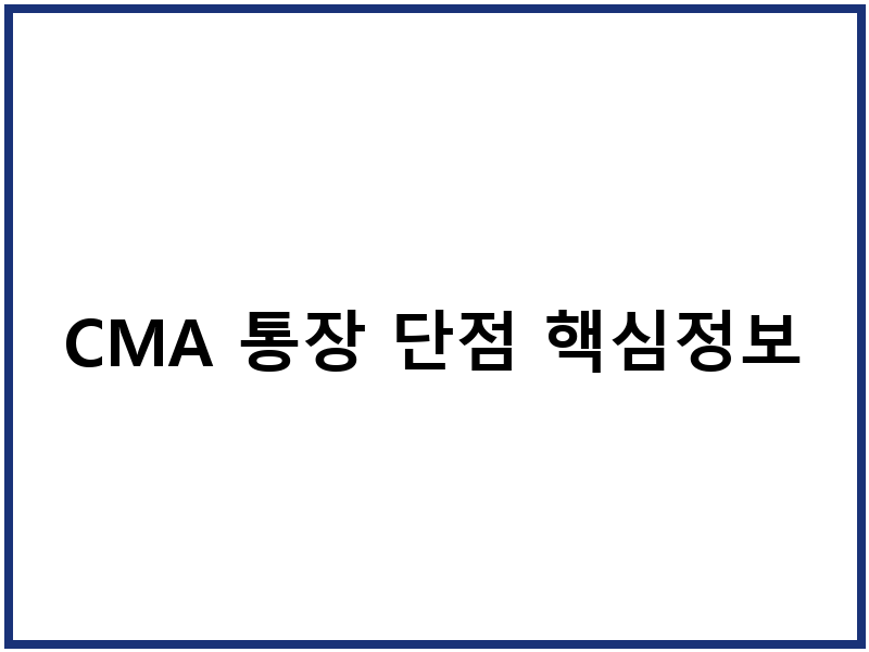 CMA 통장 단점 핵심정보