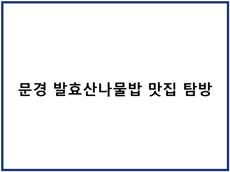 문경 발효산나물밥 맛집 탐방